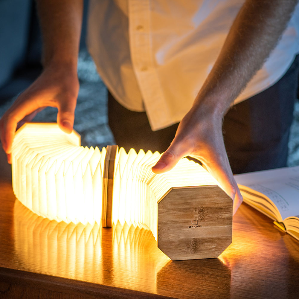 Même pour l’éclairage, il ne faut jamais perdre de vue l’environnement ! Et si nous voulons ajouter une petite touche de design, alors la lampe accordéon Gingko est tout simplement parfaite ! Elle est fabriquée en bois d’origine écodurable et peut être pliée à 180°, révélant une structure en papier Tyvek (écologique et ultrarésistant) qui émet une agréable lumière douce. Et en fermant les deux extrémités, la lampe s’éteint automatiquement. Quand écologie rime avec design !✨💡