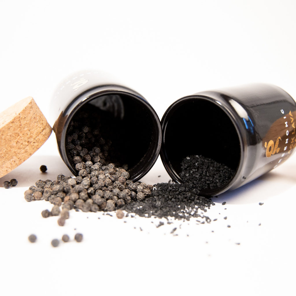 Un duo d’assaisonnement qui vous fera instantanément faire le tour du monde. Les deux pots en argile fabriqués à la main (sans plastique bien sûr !) contiennent du sel de mer enrichi de charbon actif végétal, provenant des îles hawaïennes, et du poivre enrichi avec du whisky single malt. Les recettes seront tellement meilleures et aussi… naturelles !🧂😋