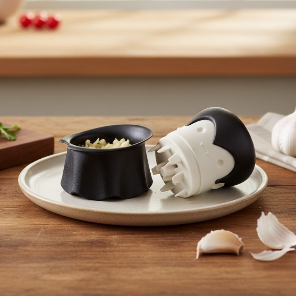 Notre Gracula, lui, à l'air de plutôt bien le supporter. Il presse en fins morceaux n'importe quelle gousse d'ail. Un gadget de cuisine original et pratique ! Attention tout de même à ne pas vous couper en cuisinant, cela pourrait bien réveiller notre vampire ensorcelé qui reprendra forme réelle instantanément !