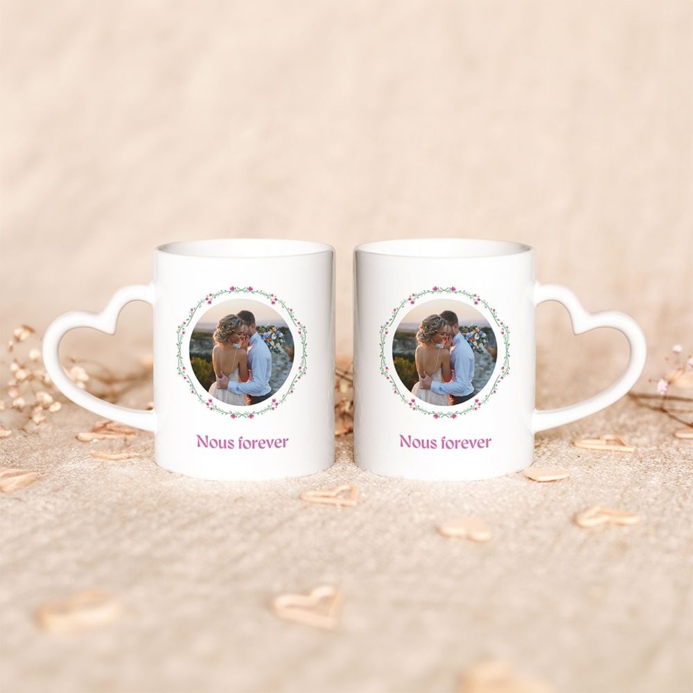 - Mug personnalisé couronne de fleurs avec photo et texte